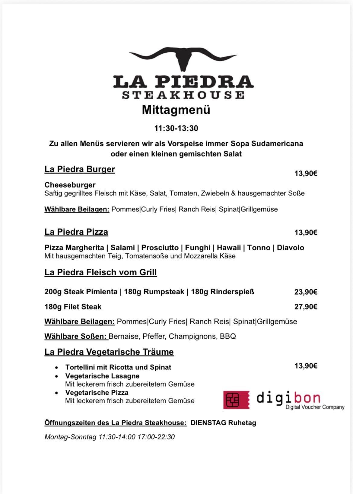 Montag: 11:30 – 14:00 / 17:00 – 22:30